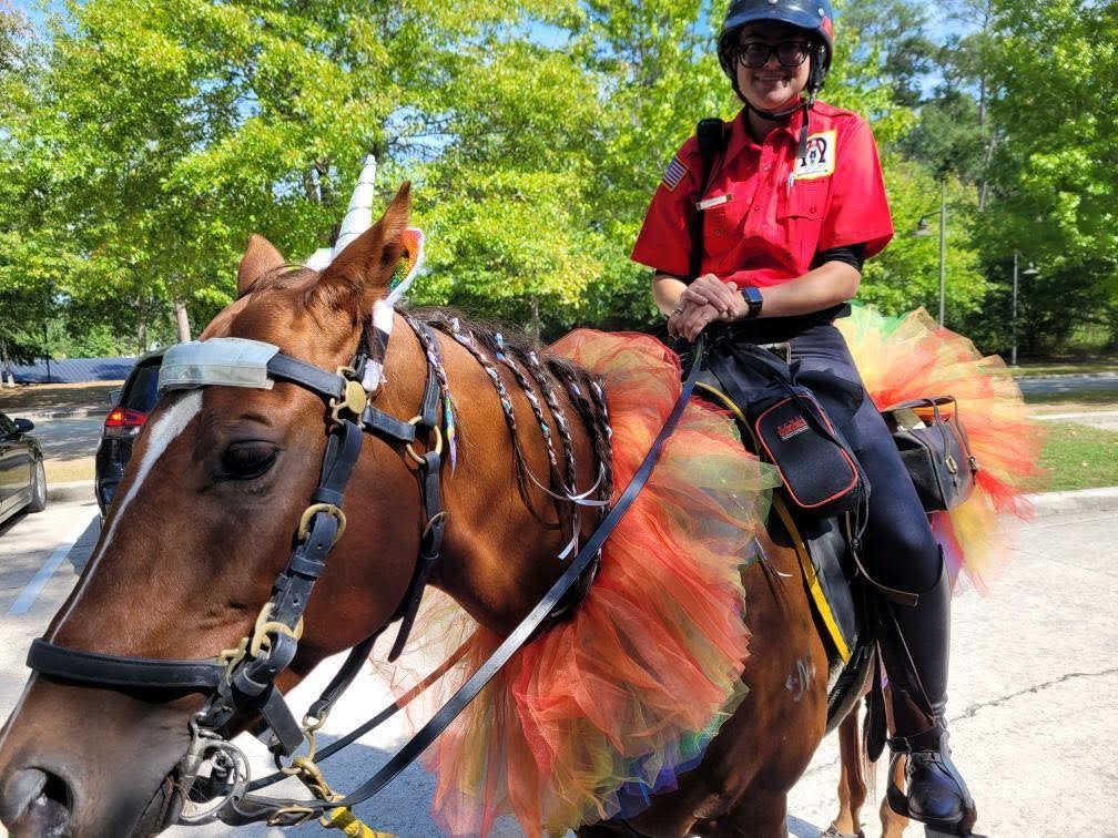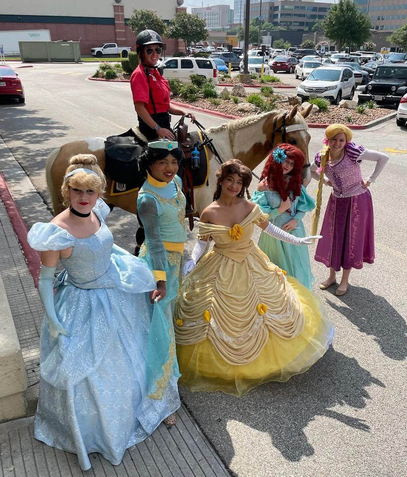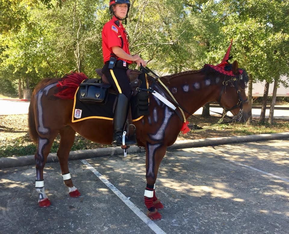 While we visit with all kinds of characters throughout the year, Halloween is the jackpot of dress-up fun. Even the horses get in the act, enjoying treats and planning tricks. Most riders participate in The Woodlands’ annual Hocus Pocus event.