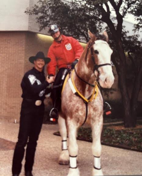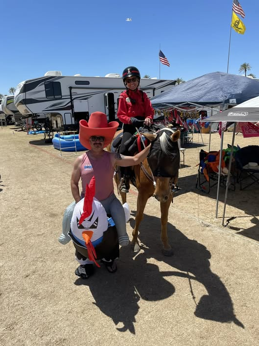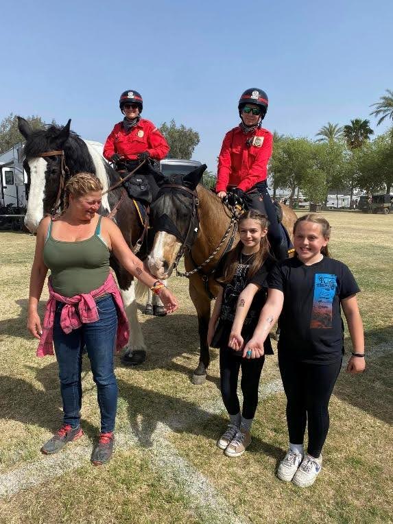 “I had a very poignant moment at Stagecoach one year,” she said. “I was part of the escort team for the Budweiser Clydesdales. We escort them to the lobby, and then the public is permitted to pet our horses. A young man rolled up in a wheelchair. In talking with him as he petted my horse, I learned he was a veteran, and his service led him to be confined to a wheelchair. I thanked him for his service, and what he did next brought tears to my eyes. He leaned over to me and thanked ME for my service in keeping the public safe. Perspective!!!”