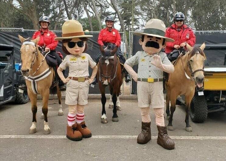 We’ve also had lots of fun interacting with the many costumed characters we meet along the way. Animal look-alikes, cartoon characters, fairy tale princesses, and mascots have crossed our paths. We’ve ridden with llamas, inflated horses, and, of course, annually with the Budweiser Clydesdales at Stagecoach Music Festival.