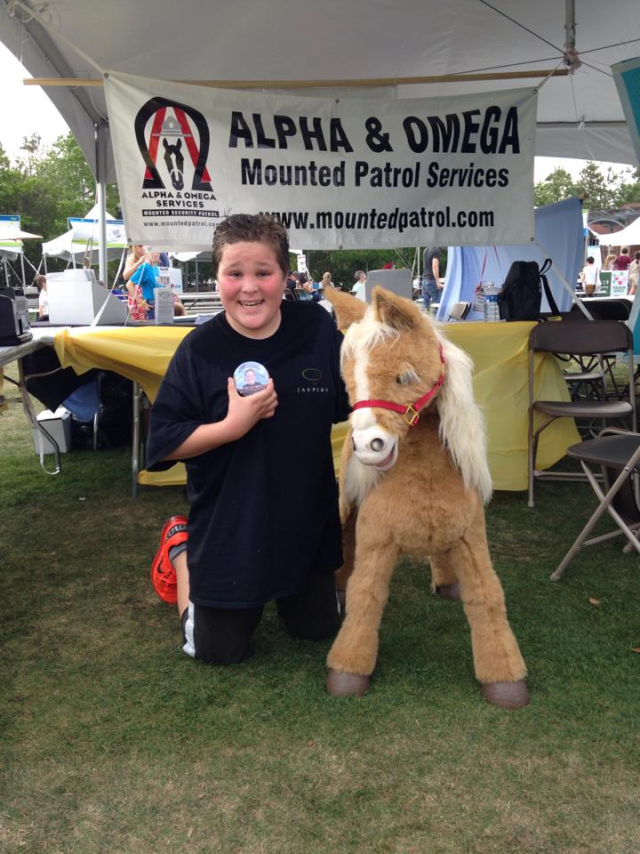 Many interactions with children have been of the educational variety. A&O riders have always been eager to meet with school groups, organizations, church classes, riding groups, sports teams, birthday parties on site, and other events and associations. We are active with YMCAs, schools, universities, Make a Wish, art festivals, and many more. We often give career advice for horse enthusiasts. Or provide demonstrations of our trained horses and the skills they use on the job. We love participating in animal support groups and pet fairs.