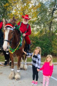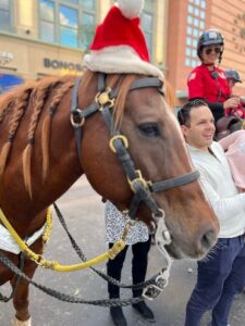 Since 1991, Alpha & Omega Mounted Security Patrol has made kids a priority. Our earliest assignments at shopping malls were to deliver Santa Claus to cheering groups of children. They delighted in Santa, of course, but a horse drawn sleigh or Santa on a horse completed the fairy tale vision of a traditional Christmas. Our yearly Christmas parties at The Woodlands still attract hundreds of families to share hot chocolate, cookies, giveaways, character appearances, and photos with the horses in their holiday finery.